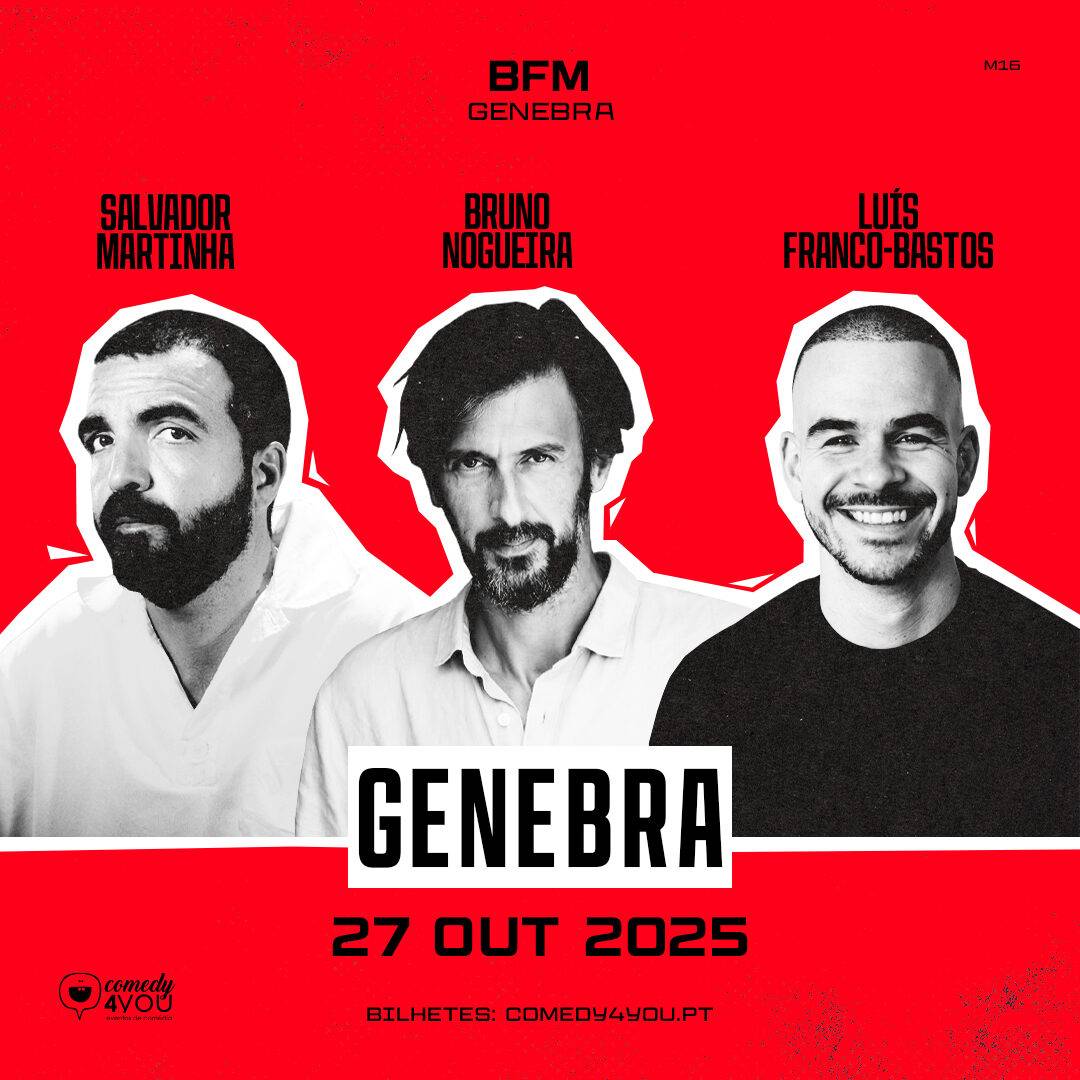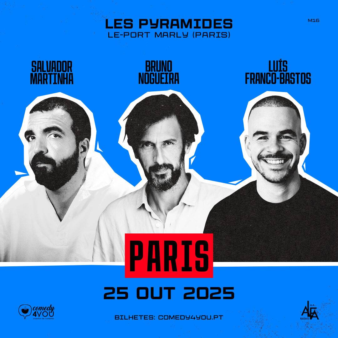 “Três nomes de peso. Três estilos de Stand-Up únicos. Salvador Martinha, Bruno Nogueira e Luis Franco-Bastos, juntos para 2 espectáculos de Stand-Up Comedy únicos e imperdíveis em Paris 🇫🇷 e Genebra 🇨🇭”
